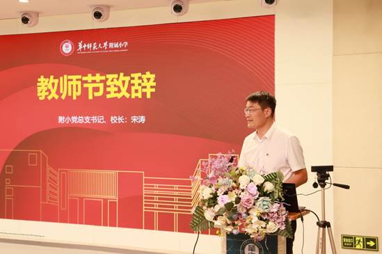华师附小党总支书记、校长宋涛向全体在岗和荣休的教师致以崇高的敬意,向新加入华师大家庭的青年教师表示诚挚的欢迎!宋校长指出,我们要牢记为党育人,为国育才,不忘初心,牢记使命,为国家为未来积聚力量。在教师节来临之际,我们要在感到快乐的同时,也要时刻认识到自己肩负的教书育人的重任,追逐教育梦想,不断为教育事业贡献自己的一份力量,为学校增光添彩,让华师附小的品牌越来越亮。希望各位教师在以后的工作中继续不忘初心,砥砺前行,共创美好的未来。