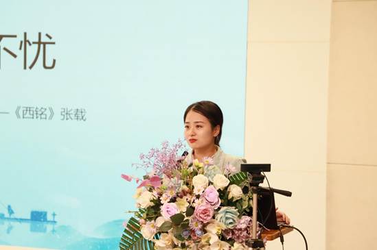 张会林老师引用张载的《西铭》中的“乐且不忧”,介绍了她的教育理念。张老师鼓励学生通过古文、古诗等去了解巨大无比的通识世界,让学生们自己去感受这个巨大的世界,不断深入了解中国传统文化。