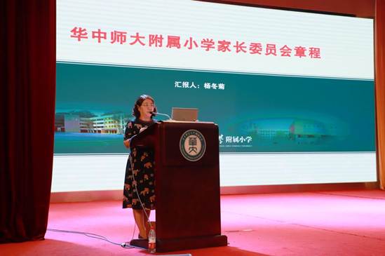 然后,附小党总支委员、副校长杨冬菊向与会代表详细的介绍了华中师范大学附属小学家长委员会章程。