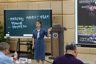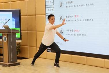 预赛中,体育学院青年教师杜宾从动作要领、重难点以及健身功效展开,进行二十四式简化太极拳教学;熊莹喆讲授糖尿病的诱因和检测指标,并介绍糖尿病人群的运动处方;李芳运用案例和数据,介绍社会体育的概念和发展;沈思明从毽球的起源与发展讲起,着重介绍了脚内侧垫球的技巧。