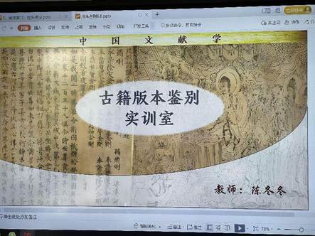 参赛选手陈冬冬老师围绕《古籍版本学虚拟仿真实验教学》,深入讲解了古籍版本鉴别实训室,借助虚拟仿真新技术带来教学方法的改革与创新等。