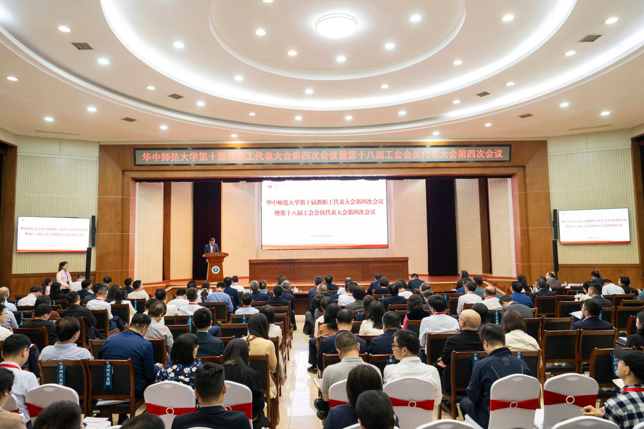 校党委书记夏立新在讲话中感谢各位代表对学校发展的关切和支持。他表示,学校工会教代会始终是学校事业发展的重要支撑,是学校治理体系中的重要部分,越是在改革进入攻坚期、发展进入关键期,越需要发挥好工会教代会这一制度优势,让学校的每一项改革措施都能凝聚共识、汇聚力量,成为全体华师人共同的行动纲领。各级工会要在统一思想上更进一步,把学校发展的“大道理”转化为教职工听得懂、能领会的“家常话”,引导教职工从学校发展大局出发,真正做到心往一处想、劲往一处使;要在汇集民意上更进一步,将教职工的个体智慧上升为集体智慧,将零散的建议整合为系统的方案,为学校优化规划实施路径、完善政策措施提供重要参考;要在形成合力上更进一步,把分散的力量凝聚起来,把各方面积极性调动起来,形成“人人关心规划、人人参与规划、人人为规划落实献力”的生动局面。