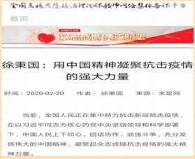 (2020年2月20日徐秉国的文章《用中国精神凝聚抗击疫情的强大力量》 被全国高校思想政治理论课教师网络集体备课平台“‘众志成城共克时艰’新冠肺炎疫情防控期间思政课建设专题栏目”转载)