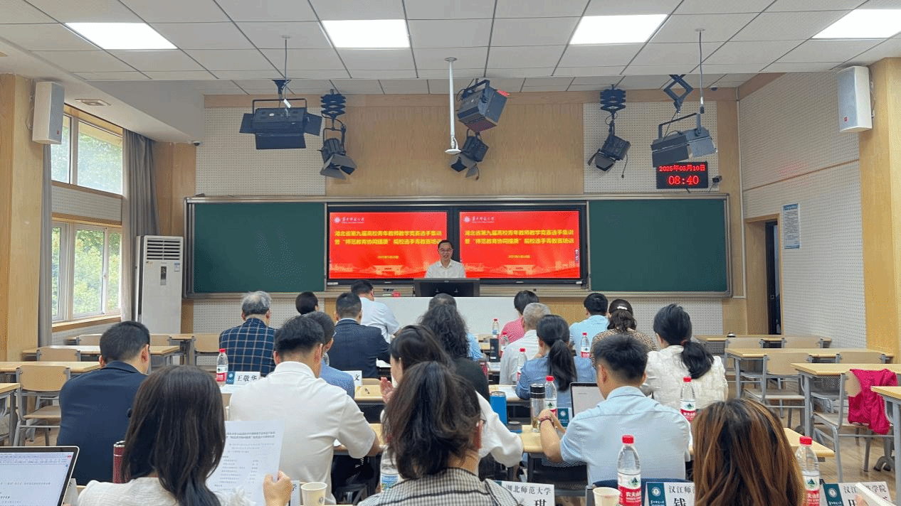 (通讯员 谭雅涵)为提升省青教赛备赛质量,助力选手教学能力提高,2025年5月10日-11日,湖北省第九届高校青年教师教学竞赛选手集训暨“师范教育协同提质”院校选手青教赛培训于7号教学楼7403教室举办。校党委副书记查道林、校工会主席骆军、正处级组织员郭春娥、教育学院党委书记陈雪玲、马克思主义学院党委书记孙永祥、生命科学学院党委书记邱保胜、计算机学院党委书记王坤出席活动,周东明、骆启桂、陈蓓、刘梦觉等九名指导专家做评委,来自湖北师范大学和汉江师范学院的七名选手和我校四名参加省青教赛的选手现场参训,其他四所协同提质高校的青年教师线上同步收听收看,线上累计观看人数达382人次。