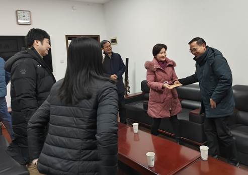 随后,来到信息管理学院慰问获得2023年获得“湖北师德先进个人”荣誉称号的李玉海教授。查书记赞扬李玉海院长站位高、示范引领好,特别是在人才培养、教学科研、师资队伍建设、社会服务等方面作出了表率!李院长表示感谢领导和学校学院的好平台,感谢学校党委和省工会,年前工会送温暖也很有“仪式感”,今后会带领学院进一步努力将事情做好。