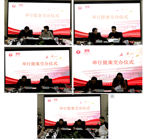 在随后的提案交办仪式上,提案工作委员会主任刘宏达向承办单位交办提案,各承办单位负责人一一认领提案,双方共同在交办书上签字。各承办单位将于2024年4月19日前予以分析研究、落实解决,并对办理落实情况以书面形式回复说明。提案督办人将对办理质量进行评分,校提案工作委员会将以适当形式对各单位办理质量予以公布。