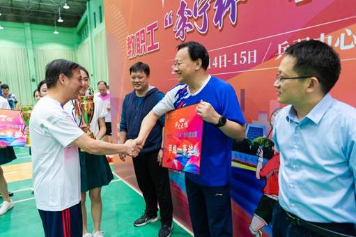 赛后,校党委副书记查道林、副校长彭双阶为获奖单位颁发奖牌,并合影留念。一附中高中部队、党政机关一队、化学学院队分获本次比赛甲组冠亚季军,数学与统计学院队、附属小学队、培训中心队摘得乙组前三甲。颁奖典礼后,2023年“华大之悦”教职工“李宁杯”羽毛球比赛圆满落幕。