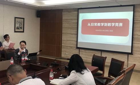 湖北省第七届青年教师教学竞赛一等奖获得者,文学院陈蓓老师以“从日常教学到教学竞赛”为题讲述日常教学与教学竞赛的关系。其从深入解读竞赛规则、全面优化日常教学、充分转化竞赛结果三部分展开,分析了日常教学与教学竞赛的异同点,认为教学竞赛需从选题、授课环节、课件设计、教学理念、教学方法五方面优化。同时,要促进日常教学、教学竞赛、教学教研的转化。