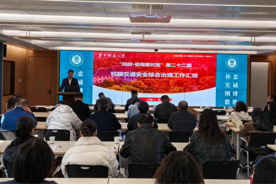 (通讯员 张婧)12月6日下午,“问政·咨询面对面”第二十二期在9号楼宣传部融媒体会议室举行。本期活动邀请了学校保卫处处长王军介绍校园交通安全综合治理等内容。活动由校工会主席骆军主持,校工会副主席易仲芳出席本次活动,各部门工会主席及教职工代表70余人参加了活动。