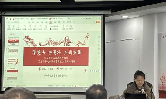 12月21日下午,法律服务中心的年晨曦、敖林巧、郑紫晨同学在学校工会进行了普法宣讲。他们宣讲的主题分别是宪法、妇女维权和财产继承,活动不仅吸引了大批教师职工前来咨询参加,更在有趣的互动中将知识传递给参与者。