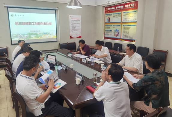 此次活动特邀了华中师范大学科技园发展有限公司总经理石炜,武汉市创业天使团导师、武汉征信信用管理有限公司董事长陈刚,中南财经政法大学法学院教授、中潮教育科技集团有限公司董事长汪军民3名评委现场打分指导。校工会常务副主席郭春娥、副主席戴文波主持会议。