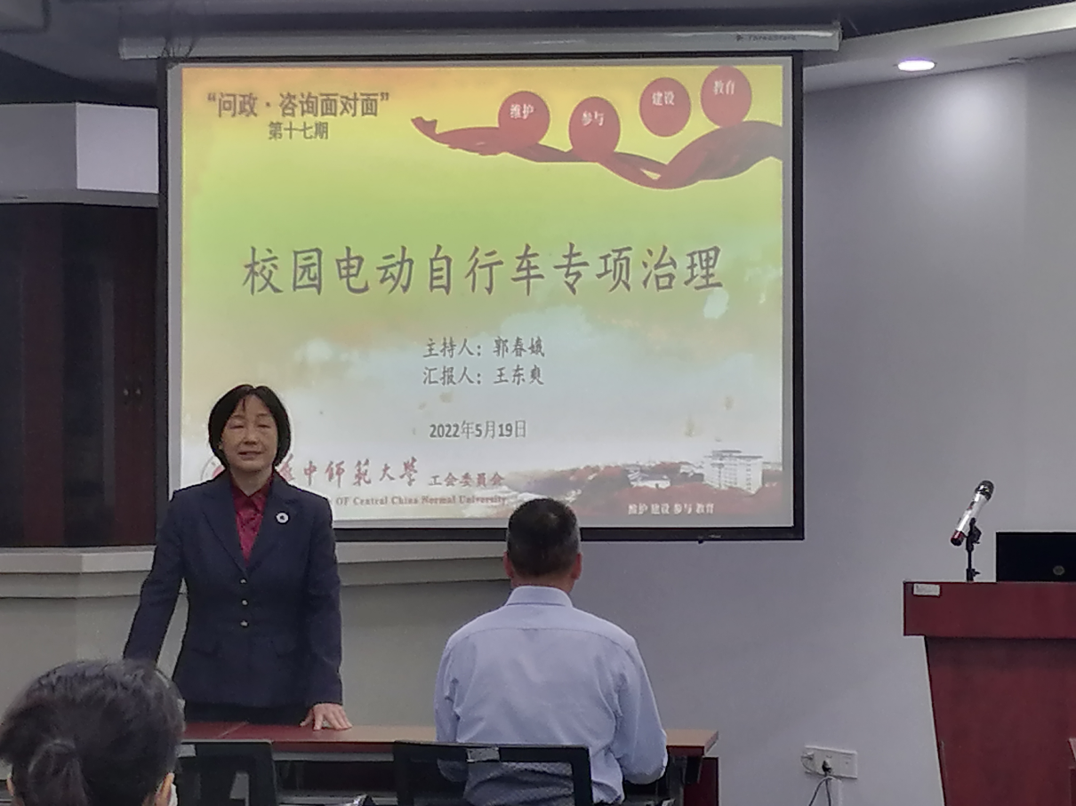(通讯员 王焱)5月19日下午,校工会在工会一楼报告厅举办了第十七期“问政•咨询面对面”活动。本期活动的主题是:校园电动自行车专项治理。本次活动由校工会常务副主席郭春娥主持、保卫处处长王东爽主讲,各学院代表参加本期活动。