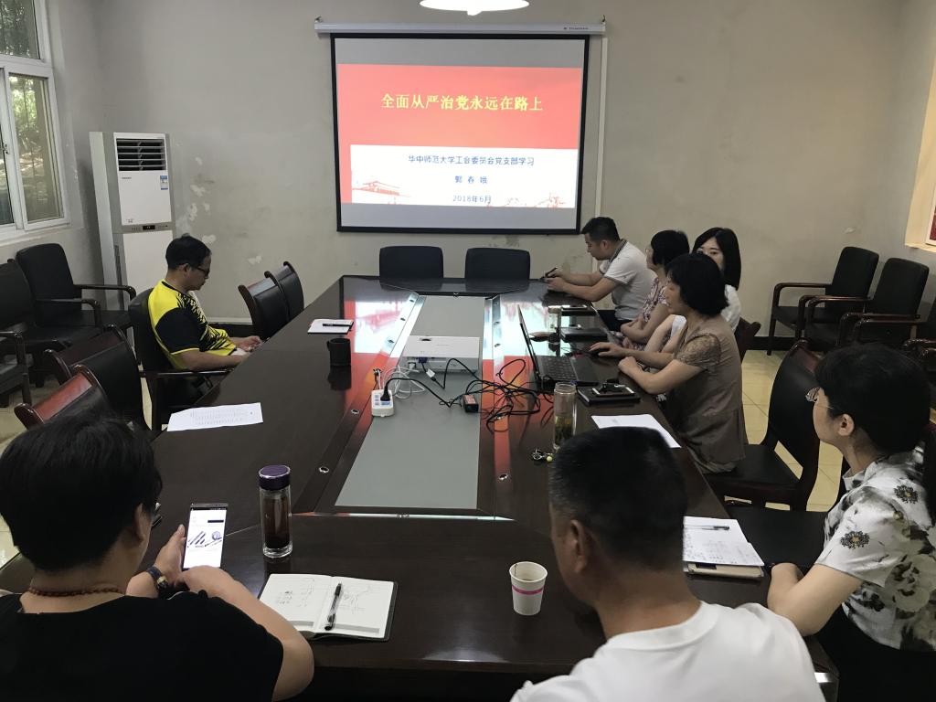 党支部书记郭春娥传达了学校2018年全面从严治党工作会精神,并作了“全面从严治党永远在路上”的专题讲座,她要求大家不仅要加强对党的思想理论和廉政制度的学习,而且要勤于思考,把握其精神实质,廉洁自律,从小节做起,从一点一滴做起,领导干部只有敬畏权力,才能保持定力,做到拒腐蚀、永不沾。