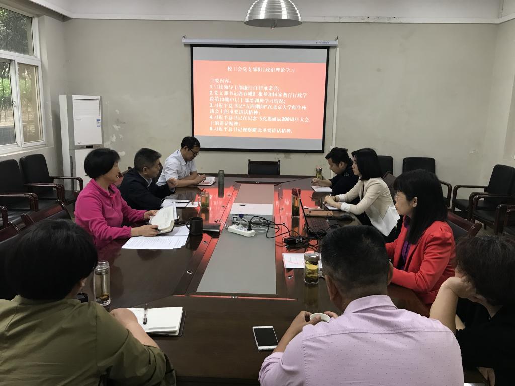 5月10日上午9点,校工会党支部组织党员开展政治理论学习。学习的主要内容有:1.宣读领导干部廉洁自律承诺书;2.党支部书记郭春娥汇报参加国家教育行政学院第13期中层干部培训班学习情况; 3.习近平总书记“五四期间”在北京大学师生座谈会上的重要讲话精神;4.习近平总书记在纪念马克思诞辰200周年大会上的讲话精神;5.习近平总书记视察湖北重要讲话精神.