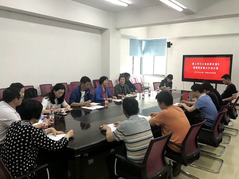 4月28日下午,校工会与教育信息技术学院教师党支部在 开展结对共建联合主题党日活动。本次主题党日的主要内容有:交纳党费;重温入党誓词;学习《中华人民共和国宪法修正案》、《教师教育振兴行动计划(2018—2022年)》以及关于青年教师培养的座谈。本次活动由校工会党支部书记郭春娥同志主持,校工会与教育信息技术学院实验中心党支部全体党员参加了本次活动。